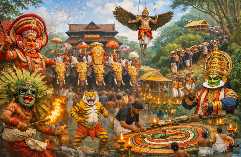 Top Festivals in Kerala Top 10 most searched, iconic, and culturally rich festivals Onam Thrissur…