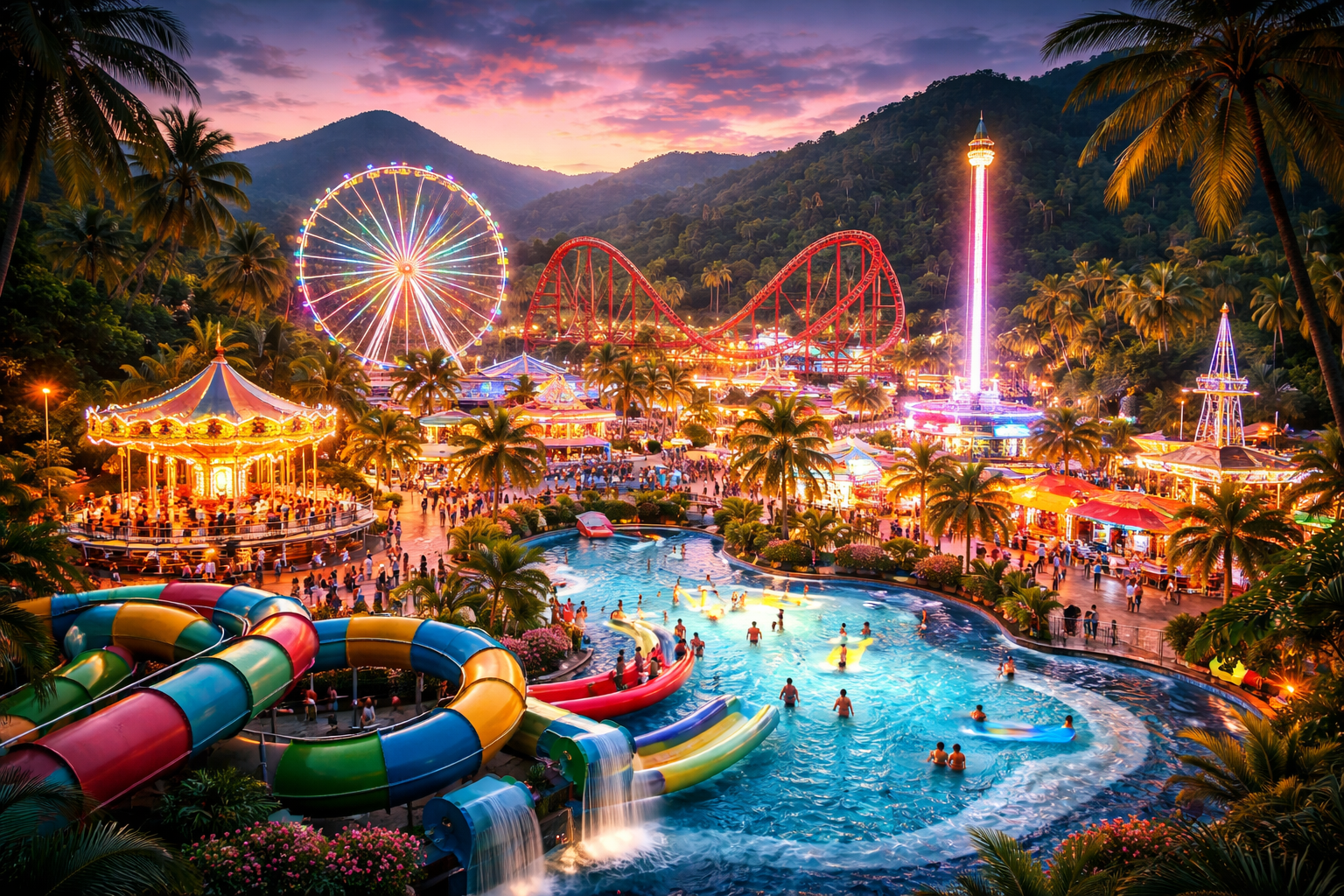 The park combines water rides with traditional amusement attractions, creating a balanced experience for families.