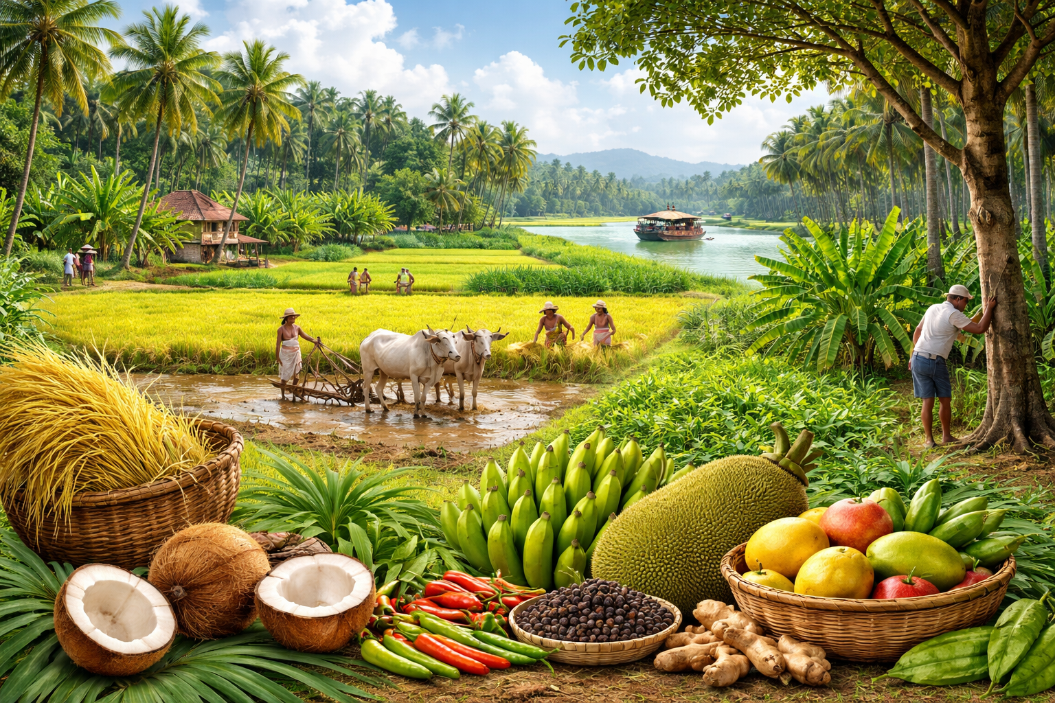 Top Agriculture in Kerala A complete, ground-level look at the crops shaping Kerala’s economy, culture, and rural life Coconut Rubber Rice (Paddy) Black Pepper Cardamom Tea Coffee Banana Cashew Tapioca…